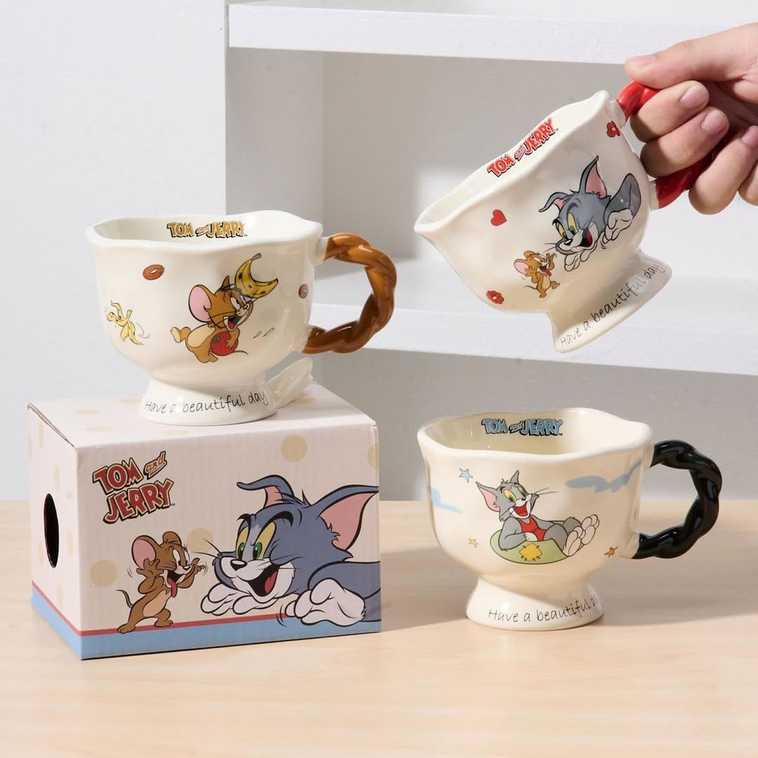 Mug de Tom y Jerry con mango trenza