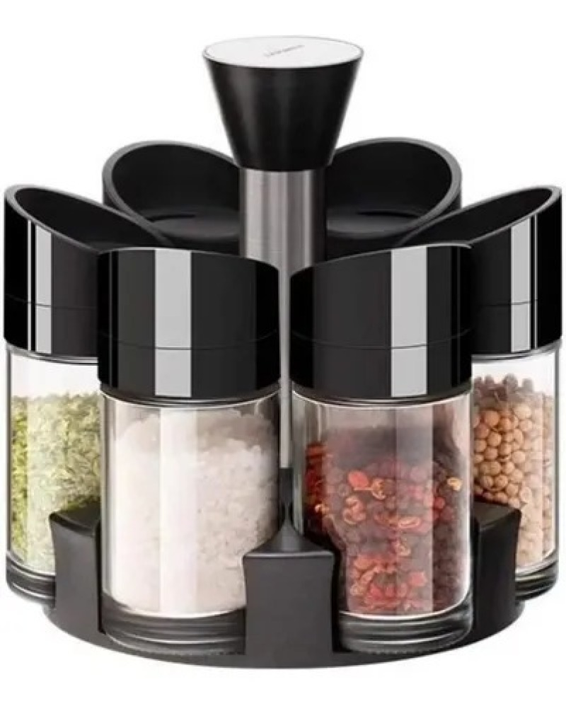Este organizador de especias le brindará a tu cocina un toque elegante y despejado, sus 6 recipientes de material plástico de alta calidad son de alta durabilidad fáciles de limpiar, además cada uno de ellos cuenta con una tapa giratoria de 3 posiciones para permitir filtrar desde avena en hojuela hasta granos finos de sal u orégano. Su diseño es giratorio de esta manera podrás alcanzar cada frasco sin problema alguno